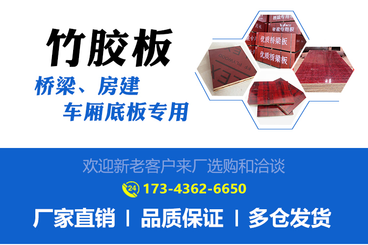 以標(biāo)準(zhǔn)竹簾搭配中簾、薄簾戓厚簾,選用無節(jié)楊木面板和木槳膜紙混合壓制而成。用標(biāo)準(zhǔn)簾、中厚混合簾生產(chǎn)出來的竹膠板具有較好的硬度和亮度,適合對混凝土表面要求高的橋梁工程。竹膠板是以毛竹材料作主要架構(gòu)和填充材料,經(jīng)高壓成坯的建材。竹膠板,是高強(qiáng)覆膜橋梁板,建筑模板,及車廂底板等,竹膠板應(yīng)用廣泛,深受用戶青睞。